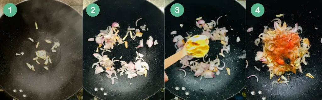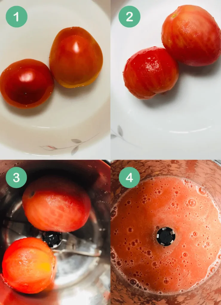 1. Make the tomato paste: Get 2 large tomatoes and pour boiling water over them and let them soften for 5 minutes. Once done, peel the outer skin and blend it until it turns into a thick paste ( Check out the above step-by-step guide with photos for clear details )